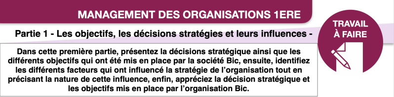 PARTIE 1 - Les objectifs, les décisions stratégiques et leurs influences