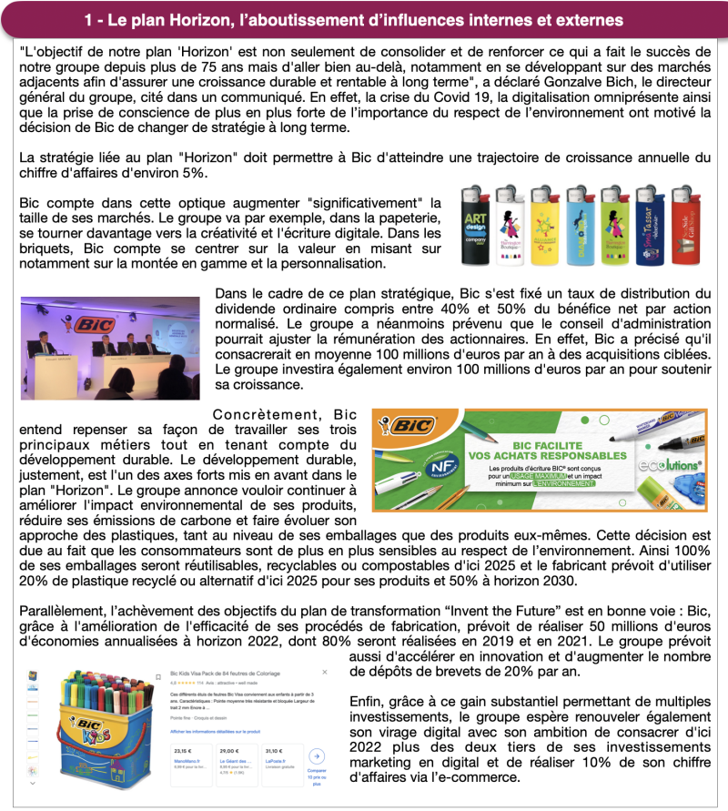 Bic dévoile son plan stratégique "Horizon". Axé sur les nouvelles vision et raison d'être de l'entreprise, il vise à placer le consommateur au centre de ses problématique, accélérer sur le développement durable tout en assurant une croissance pérenne du groupe.